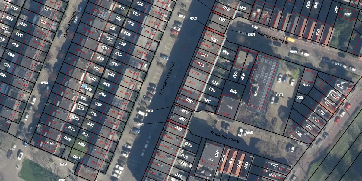 Het adres is gelegen op perceel 5725 in de sectie B en de kadastrale gemeente Charlois. De kadastrale aanduiding is aldus CLS00-B-5725. De gemiddelde perceelgrootte in Charlois is 1147,17 m². Dit perceel is kleiner: de perceeloppervlakte bedraagt 121 m². De grootste perceeloppervlakte in de kadastrale gemeente is 1,09 km². De kleinste oppervlakte bedraagt 0 m². Op het perceel zijn 3 adressen aanwezig. In de Basisregistratie Kadaster (BRK) werden de grenzen van het perceel geregistreerd op 12-05-2003.