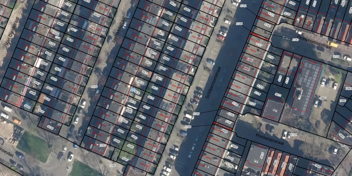Het adres is gelegen op perceel 5671 in de sectie B en de kadastrale gemeente Charlois. De kadastrale aanduiding is aldus CLS00-B-5671. De gemiddelde perceelgrootte in Charlois is 1147,24 m². Dit perceel is kleiner: de perceeloppervlakte bedraagt 135 m². De grootste perceeloppervlakte in de kadastrale gemeente is 1,09 km². De kleinste oppervlakte bedraagt 0 m². Op het perceel liggen in totaal 2 adressen. De laatste wijziging in het de Basisregistratie Kadaster (BRK) was op 12-05-2003.