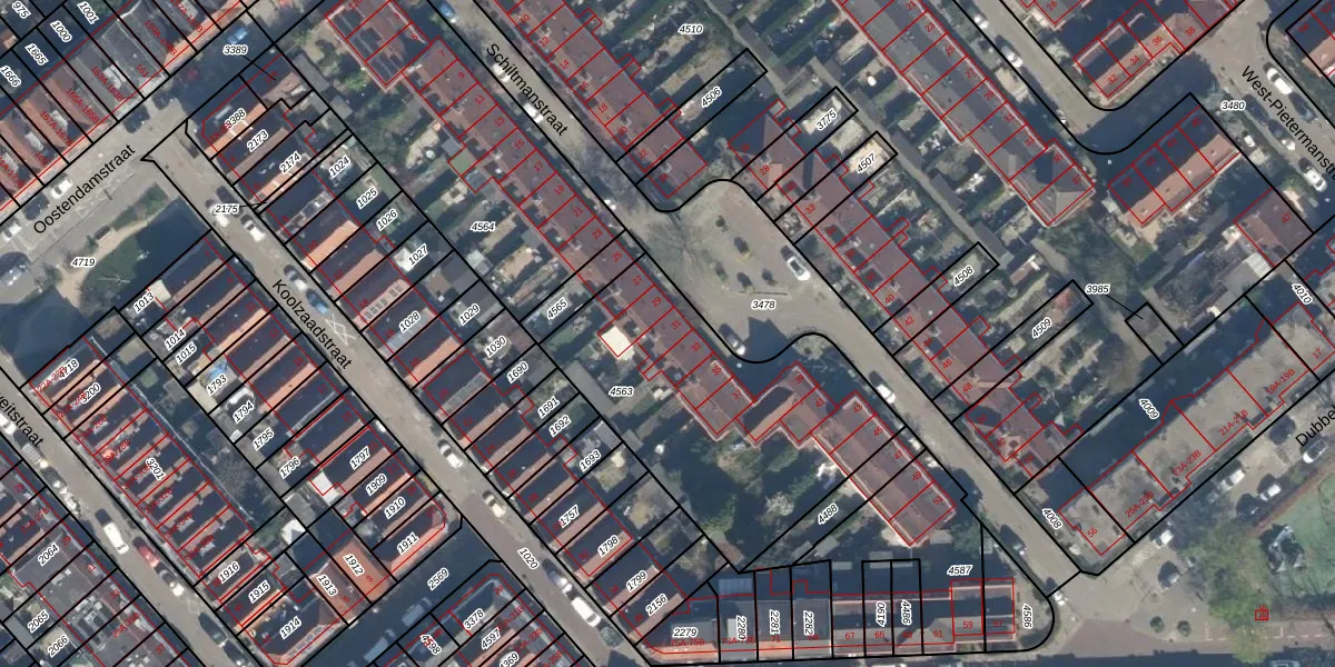 Het adres is gelegen op perceel 4563 in de sectie F en de kadastrale gemeente Charlois. De kadastrale aanduiding is aldus CLS00-F-4563. Het perceel is met 1210 m² relatief groot. Het gemiddelde ligt in de kadastrale gemeente Charlois op 1146,98 m². Het grootste perceel in de kadastrale gemeente is 1,09 km². Het kleinste perceel heeft een oppervlakte van 0 m². Er zijn 10 adressen aanwezig op het perceel. De huidige grenzen van het perceel zijn digitaal in de Basisregistratie Kadaster (BRK) geregistreerd op 22-01-2009.