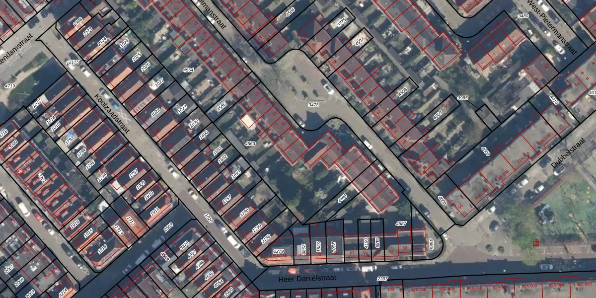 Het adres is gelegen op perceel 4563 in de sectie F en de kadastrale gemeente Charlois. De kadastrale aanduiding is aldus CLS00-F-4563. Het perceel is met 1210 m² relatief groot. Het gemiddelde ligt in de kadastrale gemeente Charlois op 1146,98 m². Het grootste perceel in de kadastrale gemeente is 1,09 km². Het kleinste perceel heeft een oppervlakte van 0 m². Op het perceel zijn 10 adressen aanwezig. De huidige grenzen van het perceel zijn digitaal in de Basisregistratie Kadaster (BRK) geregistreerd op 22-01-2009.
