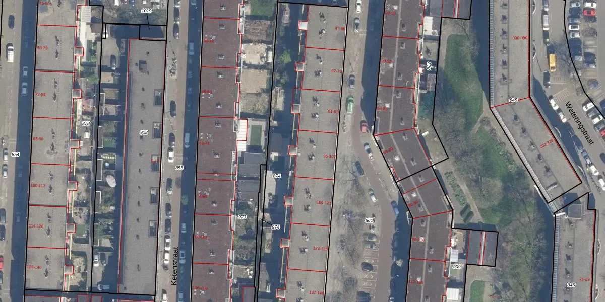 Het adres is gelegen op perceel 874 in de sectie AE en de kadastrale gemeente Rotterdam. De kadastrale aanduiding is aldus RTD04-AE-874. Het perceel is met 2350 m² relatief groot. Het gemiddelde ligt in de kadastrale gemeente Rotterdam op 1239,97 m². Het grootste perceel in de kadastrale gemeente is 17,3 ha. Het kleinste perceel heeft een oppervlakte van 0 m². Op het perceel zijn 49 adressen aanwezig. In de Basisregistratie Kadaster (BRK) werden de grenzen van het perceel geregistreerd op 24-01-2003.