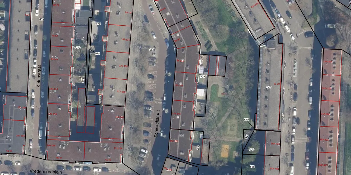 Het perceel waarop Schinkelstraat 122 staat heeft een oppervlakte van 1140 m². Dit is een zeer groot perceel. De perceeloppervlakte wordt geregistreerd door het Kadaster. Gedetailleerde informatie over de maten van dit perceel kunt u vinden in het rapport Kadastrale kaart met maatvoering van Schinkelstraat 122.