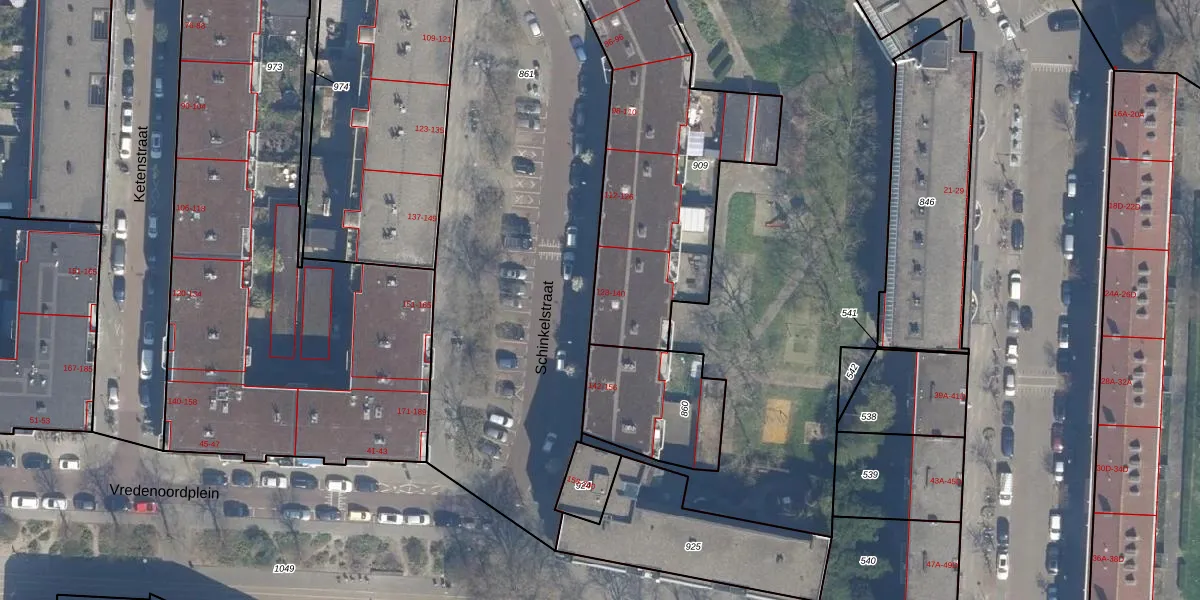 Het perceel waarop Schinkelstraat 130 staat heeft een oppervlakte van 1140 m². Dit is een zeer groot perceel. De perceeloppervlakte wordt geregistreerd door het Kadaster. Gedetailleerde informatie over de maten van dit perceel kunt u vinden in het rapport Kadastrale kaart met maatvoering van Schinkelstraat 130.