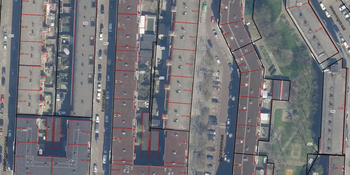 Schinkelstraat 131 is gelegen op kadastraal perceel RTD04AE874. Deze kadastrale aanduiding is uniek en wordt gebruikt door het Kadaster om eigendomsrechten en andere zakelijke rechten vast te leggen. Het perceel maakt onderdeel uit van de kadastrale gemeente Rotterdam.