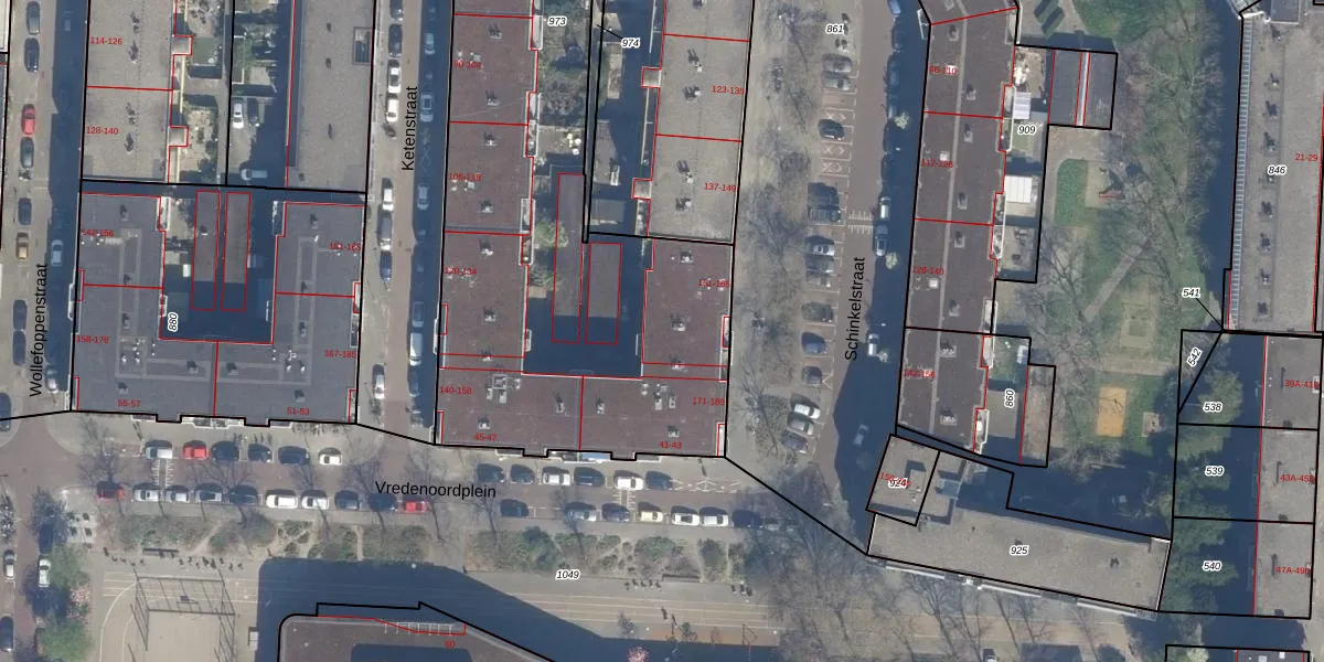 Het perceel waarop Schinkelstraat 155 staat heeft een oppervlakte van 3975 m². Dit is een zeer groot perceel. De perceeloppervlakte wordt geregistreerd door het Kadaster. Gedetailleerde informatie over de maten van dit perceel kunt u vinden in het rapport Kadastrale kaart met maatvoering van Schinkelstraat 155.