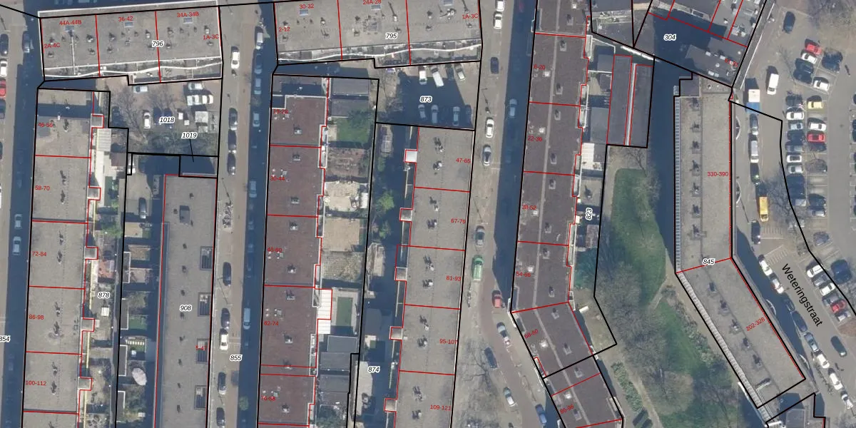 Het adres is gelegen op perceel 874 in de sectie AE en de kadastrale gemeente Rotterdam. De kadastrale aanduiding is aldus RTD04-AE-874. Het perceel is met 2350 m² relatief groot. Het gemiddelde ligt in de kadastrale gemeente Rotterdam op 1239,97 m². Het grootste perceel in de kadastrale gemeente is 17,3 ha. Het kleinste perceel heeft een oppervlakte van 0 m². Op het perceel liggen in totaal 49 adressen. De huidige grenzen van het perceel zijn digitaal in de Basisregistratie Kadaster (BRK) geregistreerd op 24-01-2003.