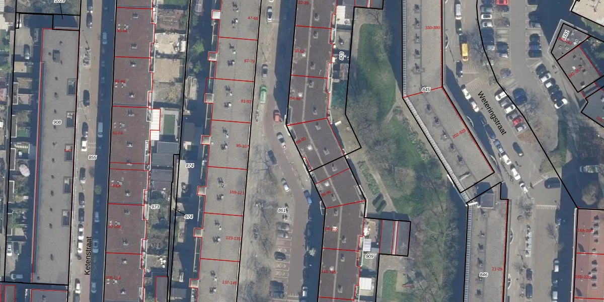 Het adres is gelegen op perceel 823 in de sectie AE en de kadastrale gemeente Rotterdam. De kadastrale aanduiding is aldus RTD04-AE-823. Het perceel is met 1900 m² relatief groot. Het gemiddelde ligt in de kadastrale gemeente Rotterdam op 1239,97 m². Het grootste perceel in de kadastrale gemeente is 17,3 ha. Het kleinste perceel heeft een oppervlakte van 0 m². Op het perceel liggen in totaal 45 adressen. De huidige grenzen van het perceel zijn digitaal in de Basisregistratie Kadaster (BRK) geregistreerd op 24-01-2003.