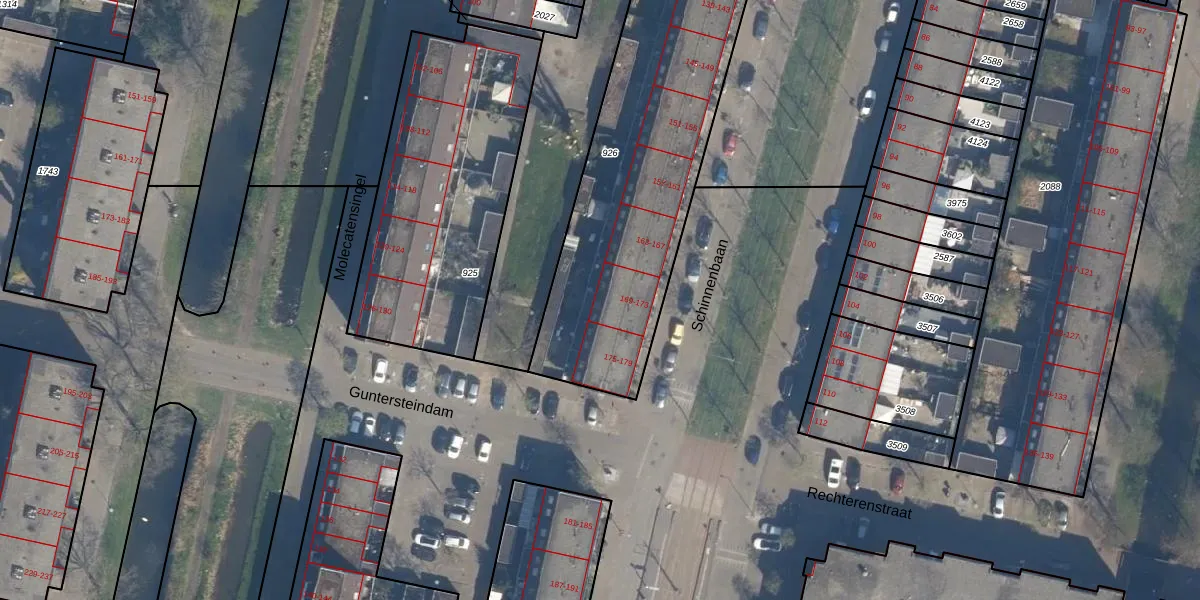 Het perceel waarop Schinnenbaan 171 staat heeft een oppervlakte van 2075 m². Dit is een zeer groot perceel. De perceeloppervlakte wordt geregistreerd door het Kadaster. Gedetailleerde informatie over de maten van dit perceel kunt u vinden in het rapport Kadastrale kaart met maatvoering van Schinnenbaan 171.