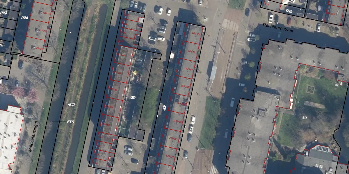 Het perceel waarop Schinnenbaan 199 staat heeft een oppervlakte van 1541 m². Dit is een zeer groot perceel. De perceeloppervlakte wordt geregistreerd door het Kadaster. Gedetailleerde informatie over de maten van dit perceel kunt u vinden in het rapport Kadastrale kaart met maatvoering van Schinnenbaan 199.