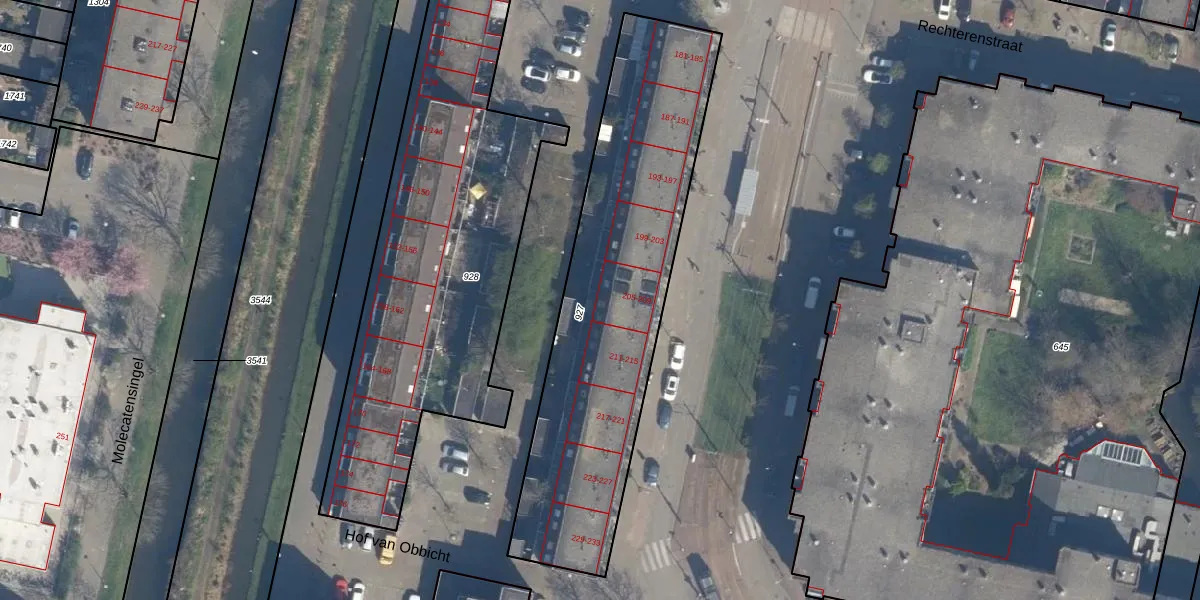 Het perceel waarop Schinnenbaan 209 staat heeft een oppervlakte van 1541 m². Dit is een zeer groot perceel. De perceeloppervlakte wordt geregistreerd door het Kadaster. Gedetailleerde informatie over de maten van dit perceel kunt u vinden in het rapport Kadastrale kaart met maatvoering van Schinnenbaan 209.