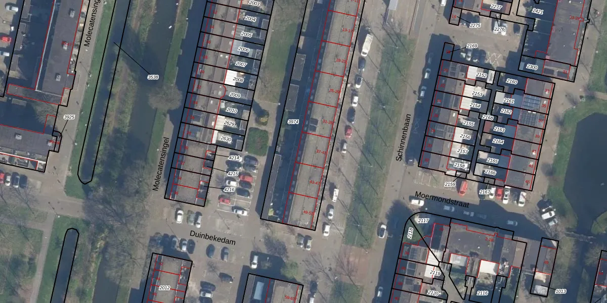 Het perceel waarop Schinnenbaan 41 staat heeft een oppervlakte van 1858 m². Dit is een zeer groot perceel. De perceeloppervlakte wordt geregistreerd door het Kadaster. Gedetailleerde informatie over de maten van dit perceel kunt u vinden in het rapport Kadastrale kaart met maatvoering van Schinnenbaan 41.
