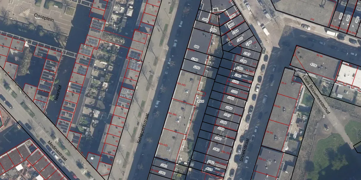 Het adres is gelegen op perceel 4504 in de sectie H en de kadastrale gemeente Delfshaven. De kadastrale aanduiding is aldus DHV00-H-4504. De oppervlakte van het perceel is 1026 m². Dat is groter dan gemiddeld in Delfshaven, waar de gemiddelde perceeloppervlakte op 628,53 m² ligt. Het grootste perceel in de kadastrale gemeente is 22,2 ha. Het kleinste perceel heeft een oppervlakte van 0 m². Op het perceel liggen in totaal 22 adressen. De laatste wijziging in het de Basisregistratie Kadaster (BRK) was op 03-07-2006.