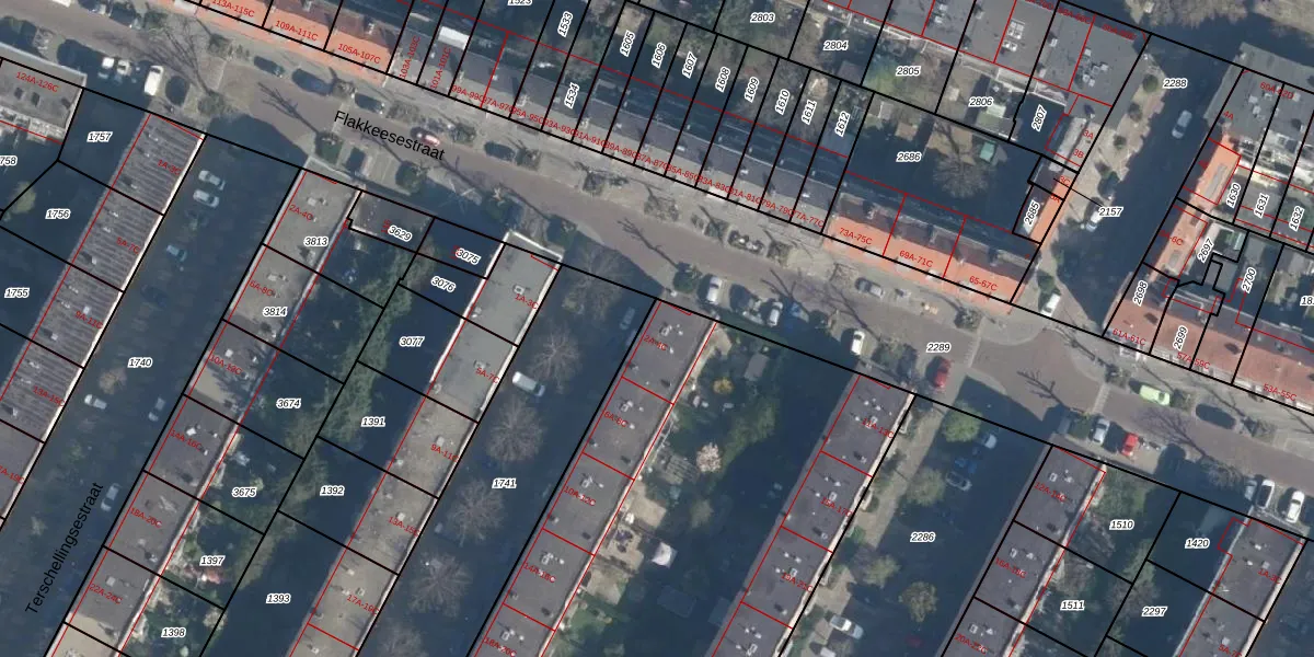 Het adres is gelegen op perceel 1389 in de sectie H en de kadastrale gemeente Charlois. De kadastrale aanduiding is aldus CLS00-H-1389. De oppervlakte van het perceel is 5058 m². Dat is groter dan gemiddeld in Charlois, waar de gemiddelde perceeloppervlakte op 1147,69 m² ligt. De grootste perceeloppervlakte in de kadastrale gemeente is 1,09 km². De kleinste oppervlakte bedraagt 0 m². Er zijn 109 adressen aanwezig op het perceel. In de Basisregistratie Kadaster (BRK) werden de grenzen van het perceel geregistreerd op 10-06-2003.