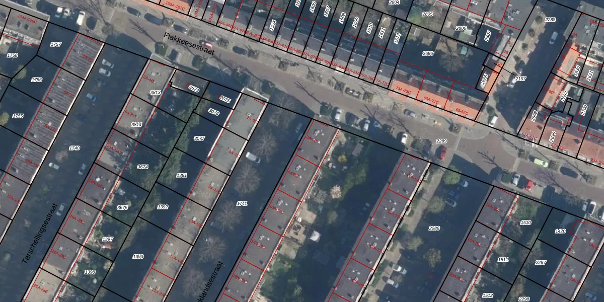 Het adres is gelegen op perceel 1389 in de sectie H en de kadastrale gemeente Charlois. De kadastrale aanduiding is aldus CLS00-H-1389. De oppervlakte van het perceel is 5058 m². Dat is groter dan gemiddeld in Charlois, waar de gemiddelde perceeloppervlakte op 1147,69 m² ligt. De grootste perceeloppervlakte in de kadastrale gemeente is 1,09 km². De kleinste oppervlakte bedraagt 0 m². Op het perceel zijn 109 adressen aanwezig. De laatste wijziging in het de Basisregistratie Kadaster (BRK) was op 10-06-2003.