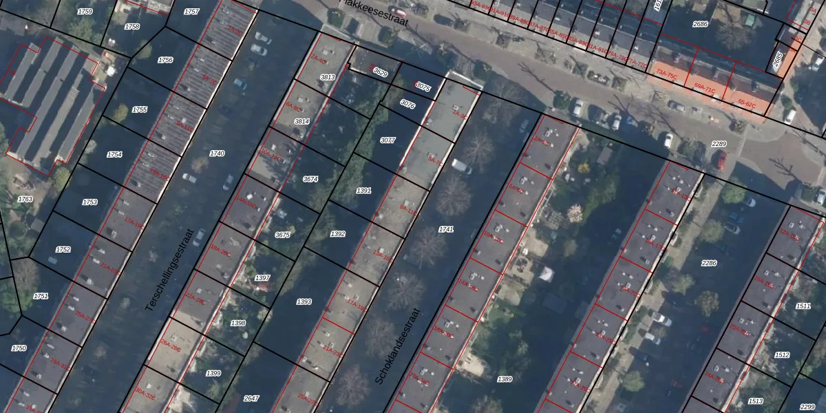 Schoklandsestraat 9-B is gelegen op kadastraal perceel CLS00H1391. Deze kadastrale aanduiding is uniek en wordt gebruikt door het Kadaster om eigendomsrechten en andere zakelijke rechten vast te leggen. Het perceel maakt onderdeel uit van de kadastrale gemeente Charlois.