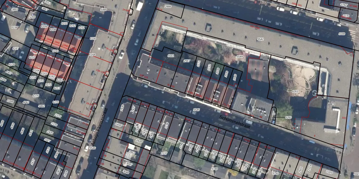Schommelstraat 93 is gelegen op kadastraal perceel RTD07W2567. Deze kadastrale aanduiding is uniek en wordt gebruikt door het Kadaster om eigendomsrechten en andere zakelijke rechten vast te leggen. Het perceel maakt onderdeel uit van de kadastrale gemeente Rotterdam.