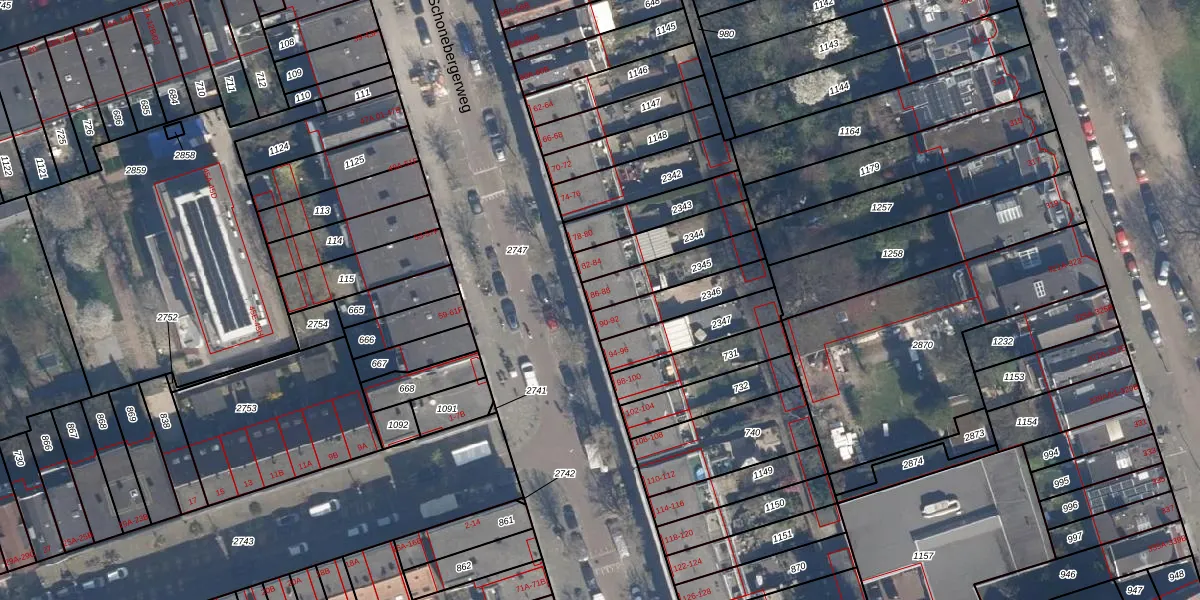 Schonebergerweg 86 is gelegen op kadastraal perceel DHV00F2345. Deze kadastrale aanduiding is uniek en wordt gebruikt door het Kadaster om eigendomsrechten en andere zakelijke rechten vast te leggen. Het perceel maakt onderdeel uit van de kadastrale gemeente Delfshaven.