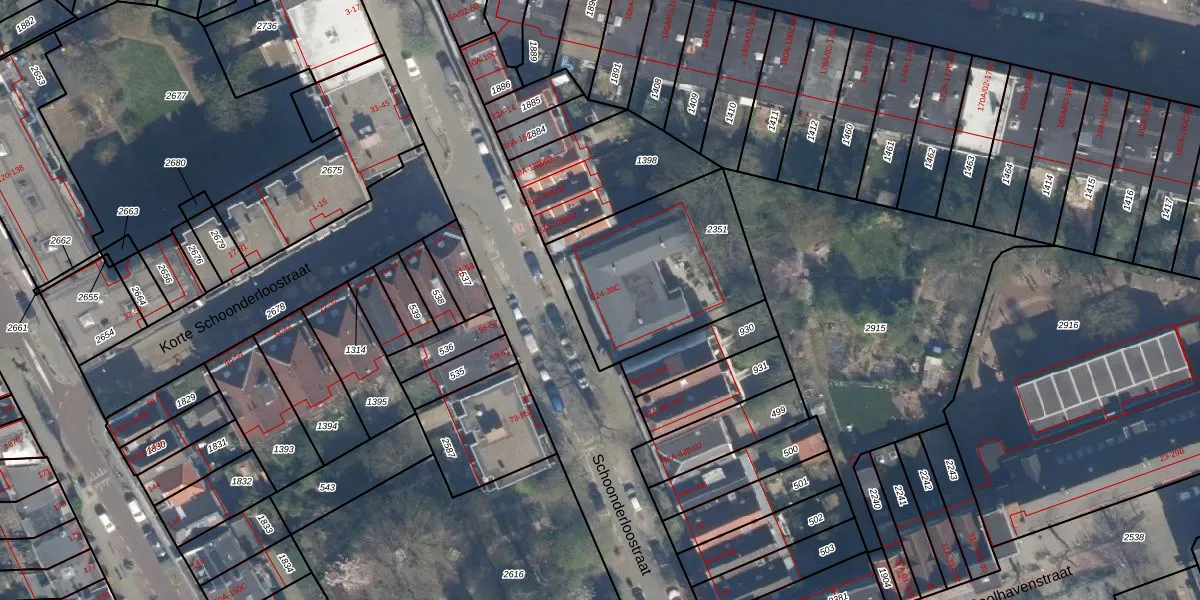 Schoonderloostraat 32 is gelegen op kadastraal perceel DHV00F2351. Deze kadastrale aanduiding is uniek en wordt gebruikt door het Kadaster om eigendomsrechten en andere zakelijke rechten vast te leggen. Het perceel maakt onderdeel uit van de kadastrale gemeente Delfshaven.
