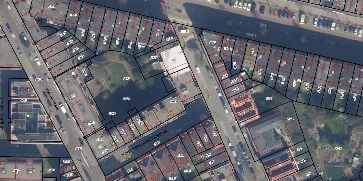 Schoonderloostraat 33 is gelegen op kadastraal perceel DHV00F2675. Deze kadastrale aanduiding is uniek en wordt gebruikt door het Kadaster om eigendomsrechten en andere zakelijke rechten vast te leggen. Het perceel maakt onderdeel uit van de kadastrale gemeente Delfshaven.