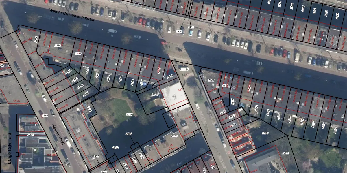 Het adres is gelegen op perceel 2736 in de sectie F en de kadastrale gemeente Delfshaven. De kadastrale aanduiding is aldus DHV00-F-2736. Het perceel is 363 m² groot. Dat is kleiner dan de gemiddelde perceeloppervlakte in Delfshaven, dat op 628,53 m² ligt. De grootste perceeloppervlakte in de kadastrale gemeente is 22,2 ha. De kleinste oppervlakte bedraagt 0 m². Op het perceel zijn 8 adressen aanwezig. In de Basisregistratie Kadaster (BRK) werden de grenzen van het perceel geregistreerd op 18-03-2004.