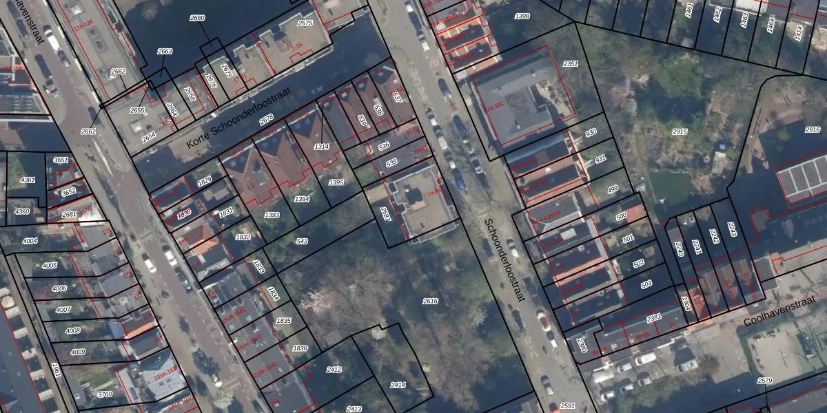 Schoonderloostraat 77 is gelegen op kadastraal perceel DHV00F2587. Deze kadastrale aanduiding is uniek en wordt gebruikt door het Kadaster om eigendomsrechten en andere zakelijke rechten vast te leggen. Het perceel maakt onderdeel uit van de kadastrale gemeente Delfshaven.