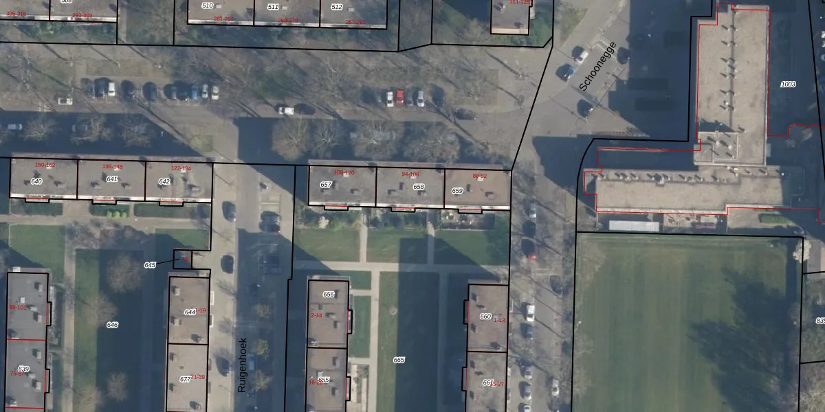 Schoonegge 106 is gelegen op kadastraal perceel CLS00K658. Deze kadastrale aanduiding is uniek en wordt gebruikt door het Kadaster om eigendomsrechten en andere zakelijke rechten vast te leggen. Het perceel maakt onderdeel uit van de kadastrale gemeente Charlois.