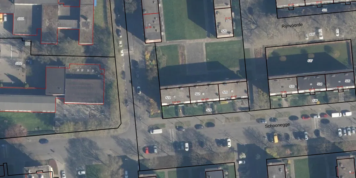 Schoonegge 113 is gelegen op kadastraal perceel CLS00K521. Deze kadastrale aanduiding is uniek en wordt gebruikt door het Kadaster om eigendomsrechten en andere zakelijke rechten vast te leggen. Het perceel maakt onderdeel uit van de kadastrale gemeente Charlois.