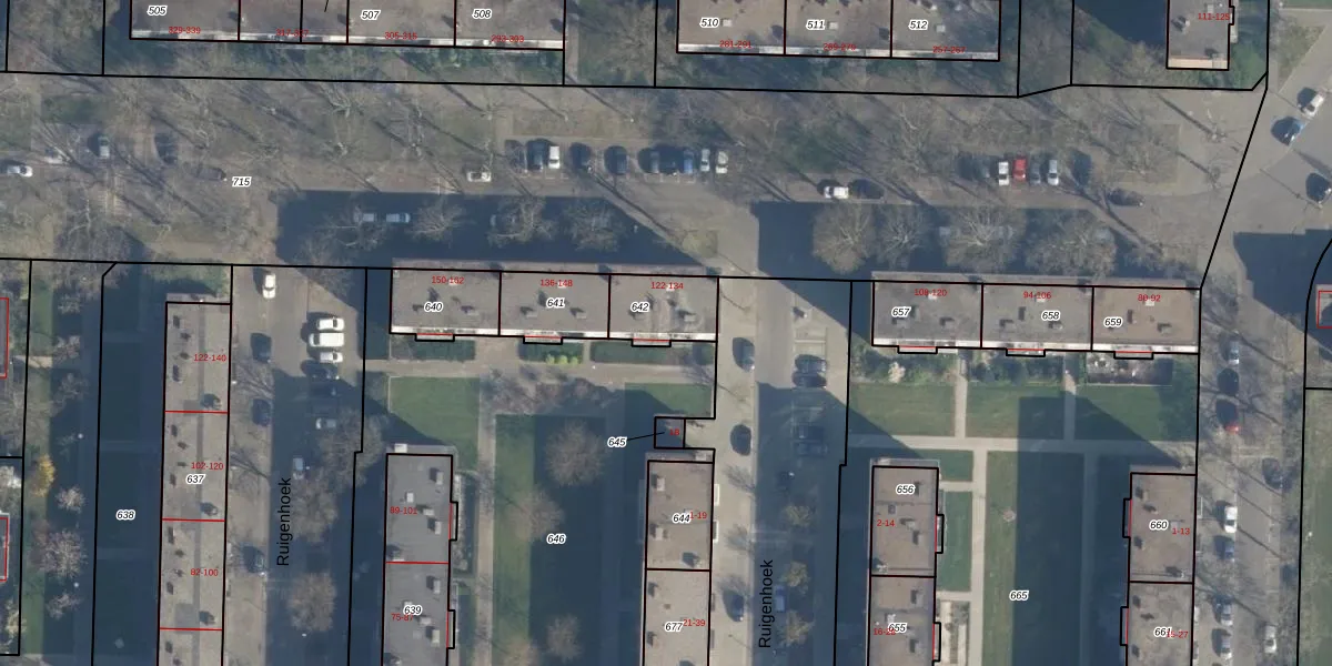 Het adres is gelegen op perceel 642 in de sectie K en de kadastrale gemeente Charlois. De kadastrale aanduiding is aldus CLS00-K-642. Het perceel is kleiner dan gemiddeld in Charlois. Het perceel is 165 m² groot, terwijl het gemiddelde ligt op 1147,17 m². Het grootste perceel in de kadastrale gemeente is 1,09 km². Het kleinste perceel heeft een oppervlakte van 0 m². Er zijn 7 adressen aanwezig op het perceel. In de Basisregistratie Kadaster (BRK) werden de grenzen van het perceel geregistreerd op 12-05-2003.