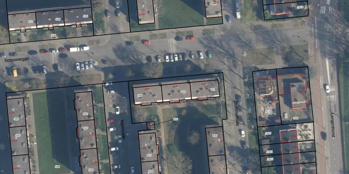 Schoonegge 32 is gelegen op kadastraal perceel CLS00K600. Deze kadastrale aanduiding is uniek en wordt gebruikt door het Kadaster om eigendomsrechten en andere zakelijke rechten vast te leggen. Het perceel maakt onderdeel uit van de kadastrale gemeente Charlois.