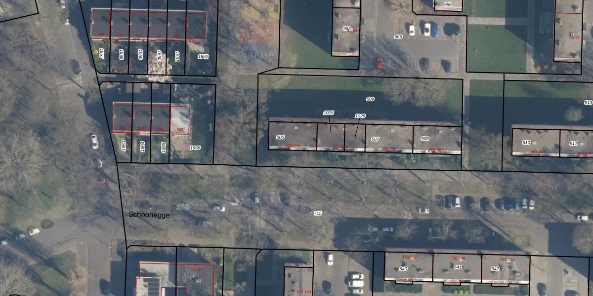 Schoonegge 333 is gelegen op kadastraal perceel CLS00K505. Deze kadastrale aanduiding is uniek en wordt gebruikt door het Kadaster om eigendomsrechten en andere zakelijke rechten vast te leggen. Het perceel maakt onderdeel uit van de kadastrale gemeente Charlois.