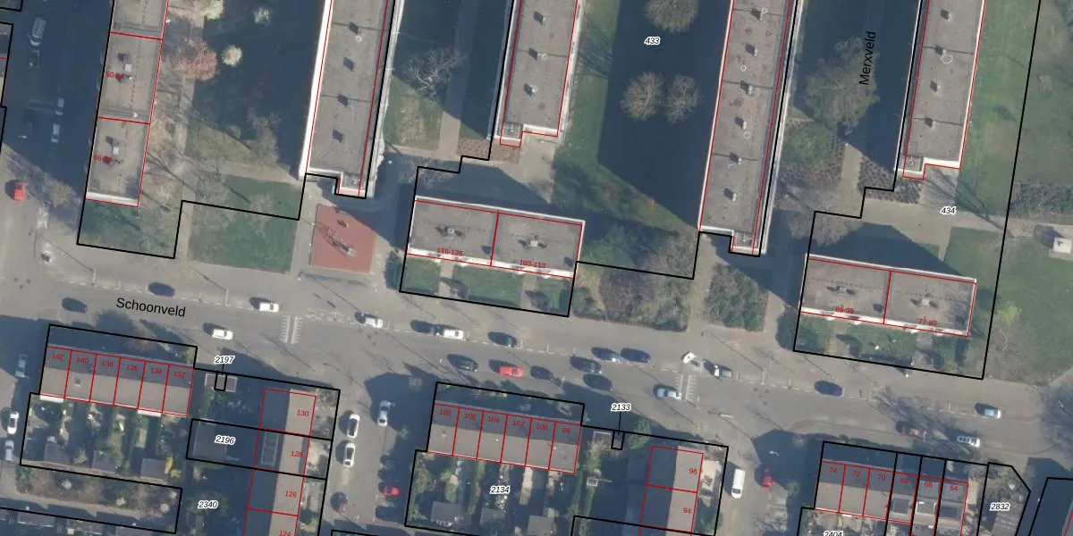 Schoonveld 109 is gelegen op kadastraal perceel CLS00K433. Deze kadastrale aanduiding is uniek en wordt gebruikt door het Kadaster om eigendomsrechten en andere zakelijke rechten vast te leggen. Het perceel maakt onderdeel uit van de kadastrale gemeente Charlois.