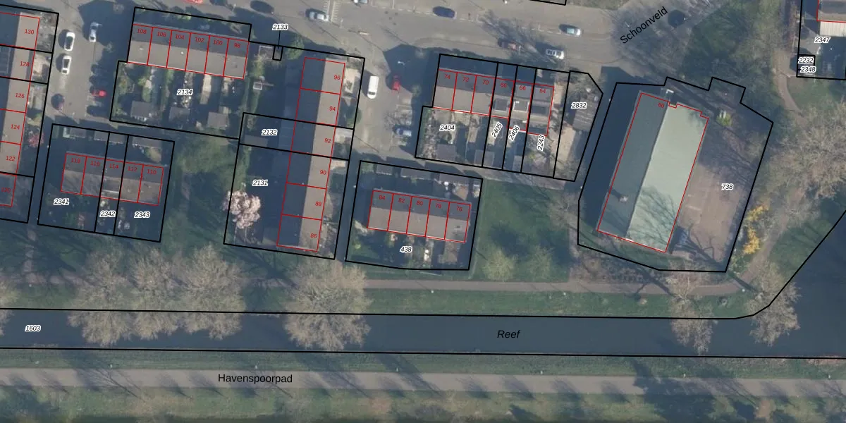 Schoonveld 80 is gelegen op kadastraal perceel CLS00K438. Deze kadastrale aanduiding is uniek en wordt gebruikt door het Kadaster om eigendomsrechten en andere zakelijke rechten vast te leggen. Het perceel maakt onderdeel uit van de kadastrale gemeente Charlois.