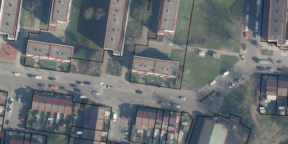 Schoonveld 93 is gelegen op kadastraal perceel CLS00K434. Deze kadastrale aanduiding is uniek en wordt gebruikt door het Kadaster om eigendomsrechten en andere zakelijke rechten vast te leggen. Het perceel maakt onderdeel uit van de kadastrale gemeente Charlois.