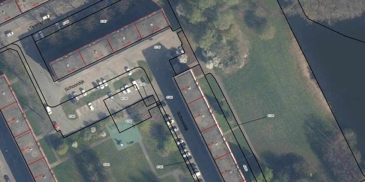 Het perceel waarop Schoordijk 117 staat heeft een oppervlakte van 1696 m². Dit is een zeer groot perceel. De perceeloppervlakte wordt geregistreerd door het Kadaster. Gedetailleerde informatie over de maten van dit perceel kunt u vinden in het rapport Kadastrale kaart met maatvoering van Schoordijk 117.
