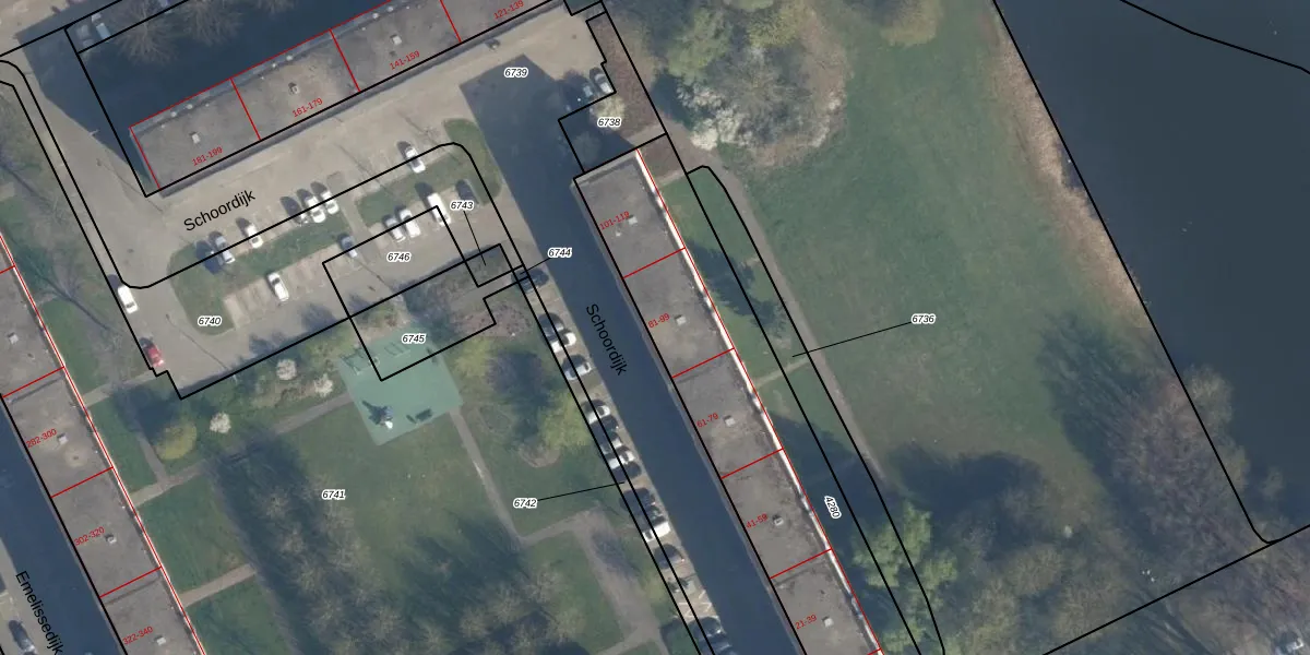 Het perceel waarop Schoordijk 89 staat heeft een oppervlakte van 1696 m². Dit is een zeer groot perceel. De perceeloppervlakte wordt geregistreerd door het Kadaster. Gedetailleerde informatie over de maten van dit perceel kunt u vinden in het rapport Kadastrale kaart met maatvoering van Schoordijk 89.