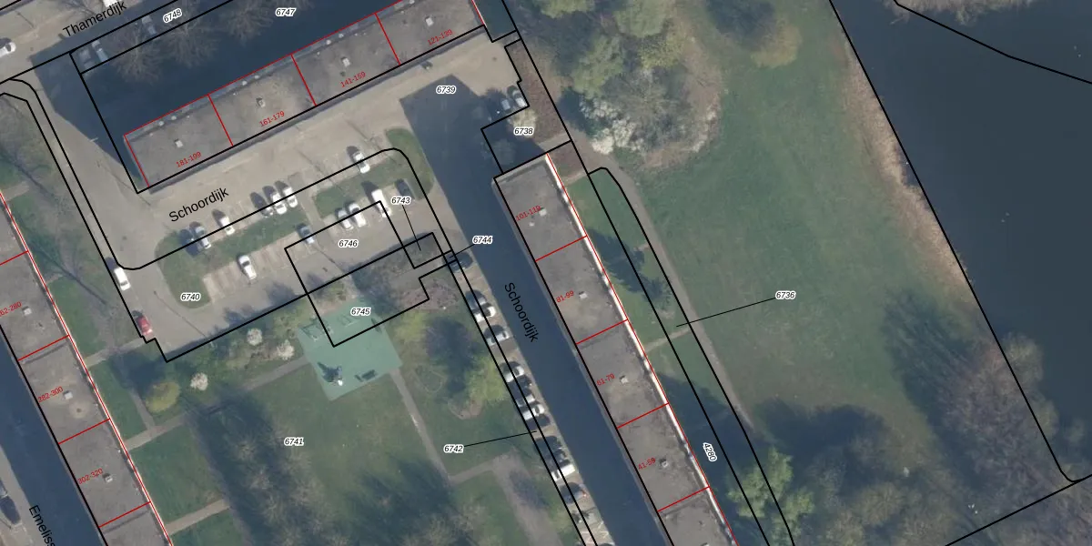 Het perceel waarop Schoordijk 99 staat heeft een oppervlakte van 1696 m². Dit is een zeer groot perceel. De perceeloppervlakte wordt geregistreerd door het Kadaster. Gedetailleerde informatie over de maten van dit perceel kunt u vinden in het rapport Kadastrale kaart met maatvoering van Schoordijk 99.