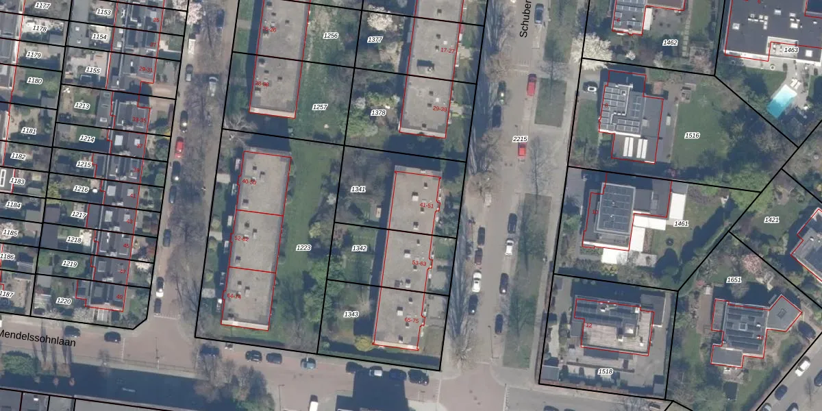 Schubertlaan 43 is gelegen op kadastraal perceel HLG03D1341. Deze kadastrale aanduiding is uniek en wordt gebruikt door het Kadaster om eigendomsrechten en andere zakelijke rechten vast te leggen. Het perceel maakt onderdeel uit van de kadastrale gemeente Hillegersberg.