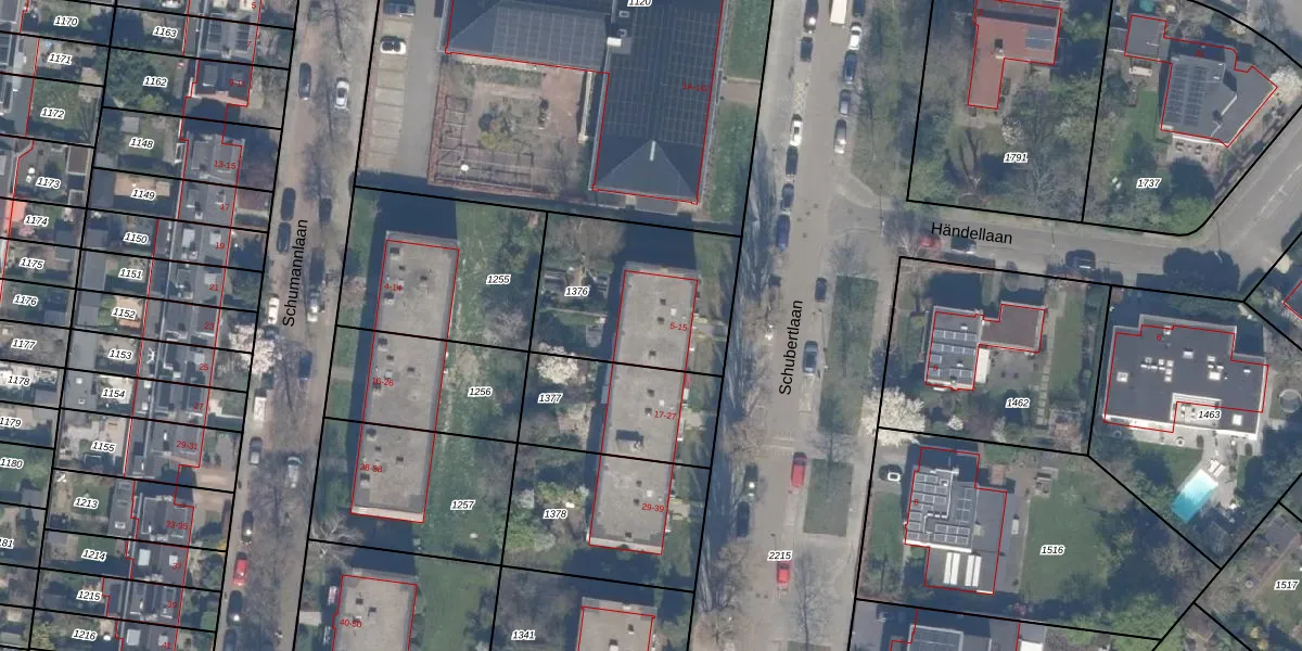 Het perceel waarop Schubertlaan 9 staat heeft een oppervlakte van 651 m². Dit is een groot perceel. De perceeloppervlakte wordt geregistreerd door het Kadaster. Gedetailleerde informatie over de maten van dit perceel kunt u vinden in het rapport Kadastrale kaart met maatvoering van Schubertlaan 9.
