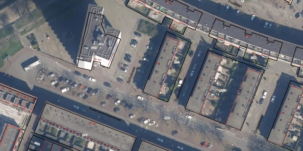 Schuitveer 12 is gelegen op kadastraal perceel RTD05P2213. Deze kadastrale aanduiding is uniek en wordt gebruikt door het Kadaster om eigendomsrechten en andere zakelijke rechten vast te leggen. Het perceel maakt onderdeel uit van de kadastrale gemeente Rotterdam.