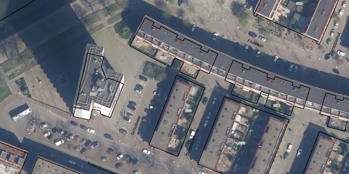 Schuitveer 2 is gelegen op kadastraal perceel RTD05P2213. Deze kadastrale aanduiding is uniek en wordt gebruikt door het Kadaster om eigendomsrechten en andere zakelijke rechten vast te leggen. Het perceel maakt onderdeel uit van de kadastrale gemeente Rotterdam.