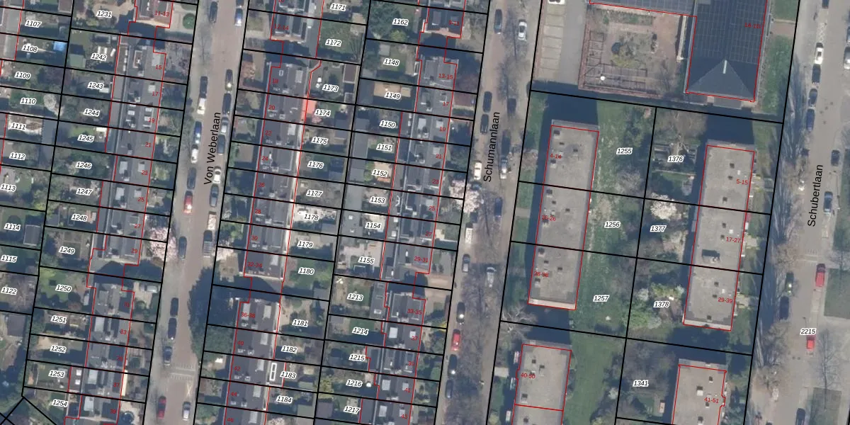 Het perceel waarop Schumannlaan 25 staat heeft een oppervlakte van 173 m². Dit is een middelgroot perceel. De perceeloppervlakte wordt geregistreerd door het Kadaster. Gedetailleerde informatie over de maten van dit perceel kunt u vinden in het rapport Kadastrale kaart met maatvoering van Schumannlaan 25.