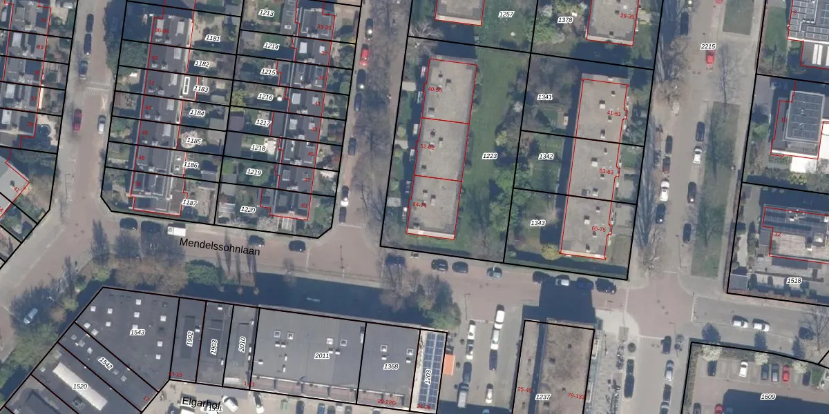 Het adres ligt op het perceel HLG03-D-1223, dat zich in de kadastrale gemeente Hillegersberg bevindt. Het perceel is met 1530 m² relatief groot. Het gemiddelde ligt in de kadastrale gemeente Hillegersberg op 875,49 m². De grootste perceeloppervlakte in de kadastrale gemeente is 34,1 ha. De kleinste oppervlakte bedraagt 0 m². Op het perceel zijn 18 adressen aanwezig. In de Basisregistratie Kadaster (BRK) werden de grenzen van het perceel geregistreerd op 28-08-2002.