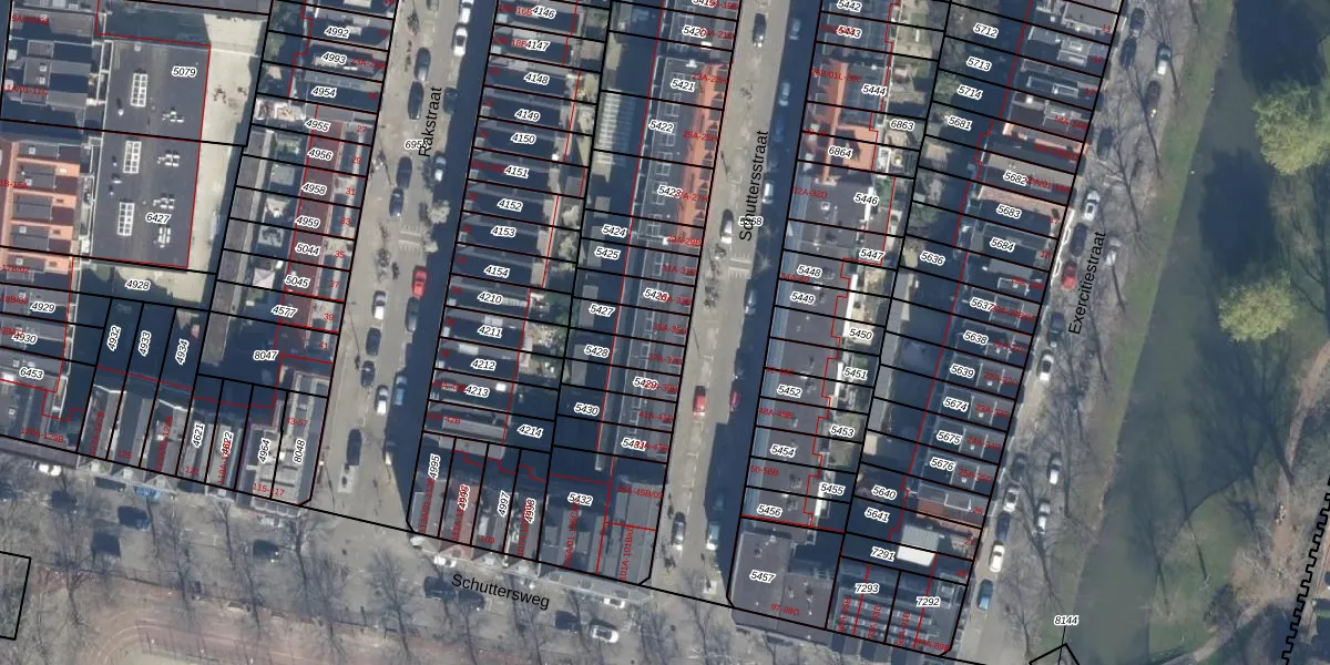 Het perceel waarop Schuttersstraat 35-A staat heeft een oppervlakte van 80 m². Dit is een klein perceel. De perceeloppervlakte wordt geregistreerd door het Kadaster. Gedetailleerde informatie over de maten van dit perceel kunt u vinden in het rapport Kadastrale kaart met maatvoering van Schuttersstraat 35-A.