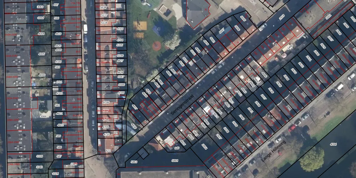 Seringenstraat 21-A is gelegen op kadastraal perceel CLS00G4882. Deze kadastrale aanduiding is uniek en wordt gebruikt door het Kadaster om eigendomsrechten en andere zakelijke rechten vast te leggen. Het perceel maakt onderdeel uit van de kadastrale gemeente Charlois.