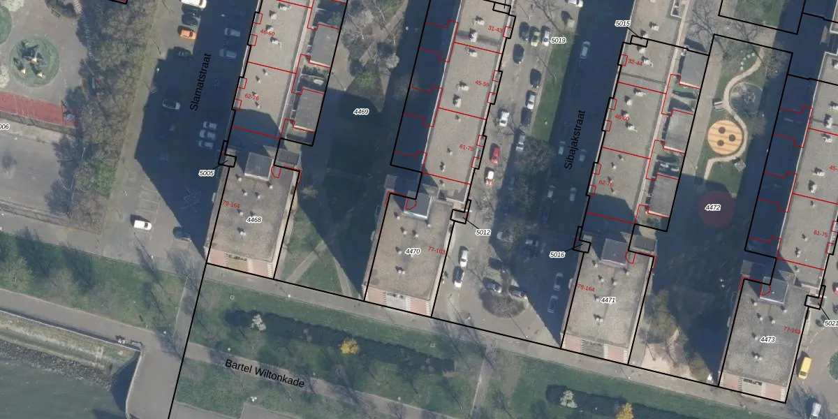 Sibajakstraat 123 is gelegen op kadastraal perceel DHV00H4470. Deze kadastrale aanduiding is uniek en wordt gebruikt door het Kadaster om eigendomsrechten en andere zakelijke rechten vast te leggen. Het perceel maakt onderdeel uit van de kadastrale gemeente Delfshaven.
