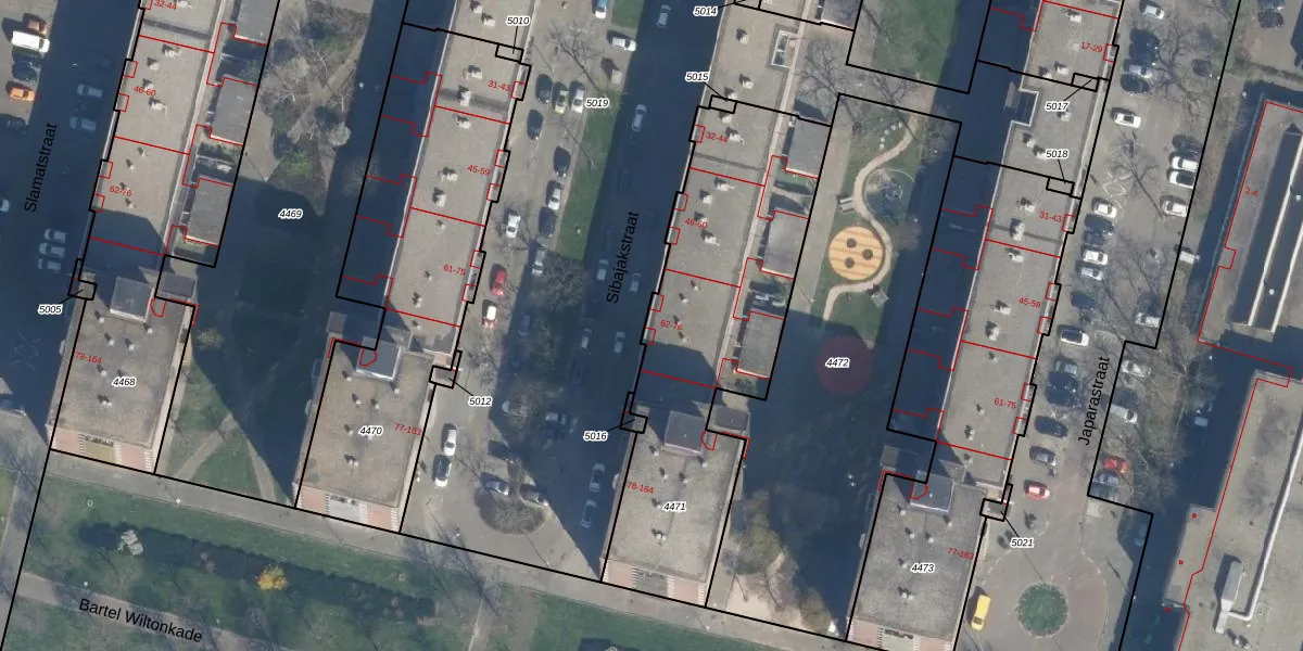 Sibajakstraat 76 is gelegen op kadastraal perceel DHV00H4471. Deze kadastrale aanduiding is uniek en wordt gebruikt door het Kadaster om eigendomsrechten en andere zakelijke rechten vast te leggen. Het perceel maakt onderdeel uit van de kadastrale gemeente Delfshaven.
