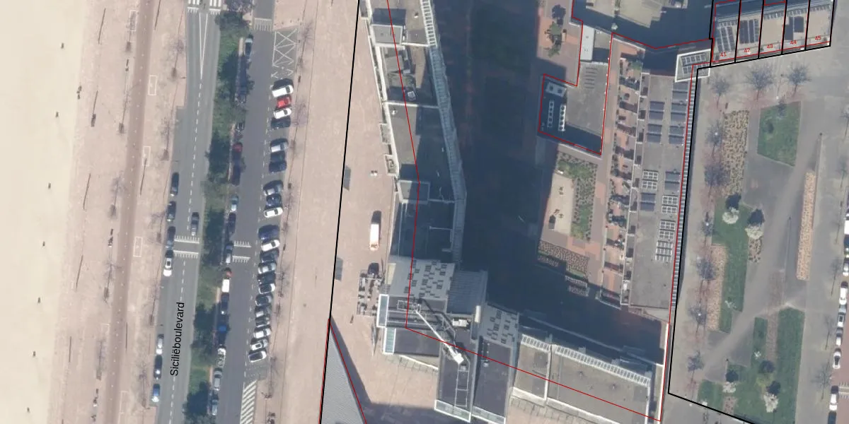 Het perceel waarop Siciliëboulevard 652 staat heeft een oppervlakte van 2,3 ha. Dit is een zeer groot perceel. De perceeloppervlakte wordt geregistreerd door het Kadaster. Gedetailleerde informatie over de maten van dit perceel kunt u vinden in het rapport Kadastrale kaart met maatvoering van Siciliëboulevard 652.