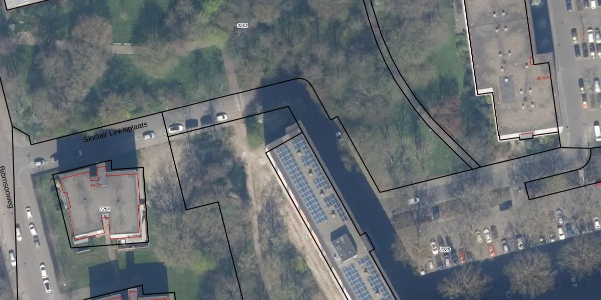 Het perceel waarop Sinclair Lewisplaats 13 staat heeft een oppervlakte van 2709 m². Dit is een zeer groot perceel. De perceeloppervlakte wordt geregistreerd door het Kadaster. Gedetailleerde informatie over de maten van dit perceel kunt u vinden in het rapport Kadastrale kaart met maatvoering van Sinclair Lewisplaats 13.