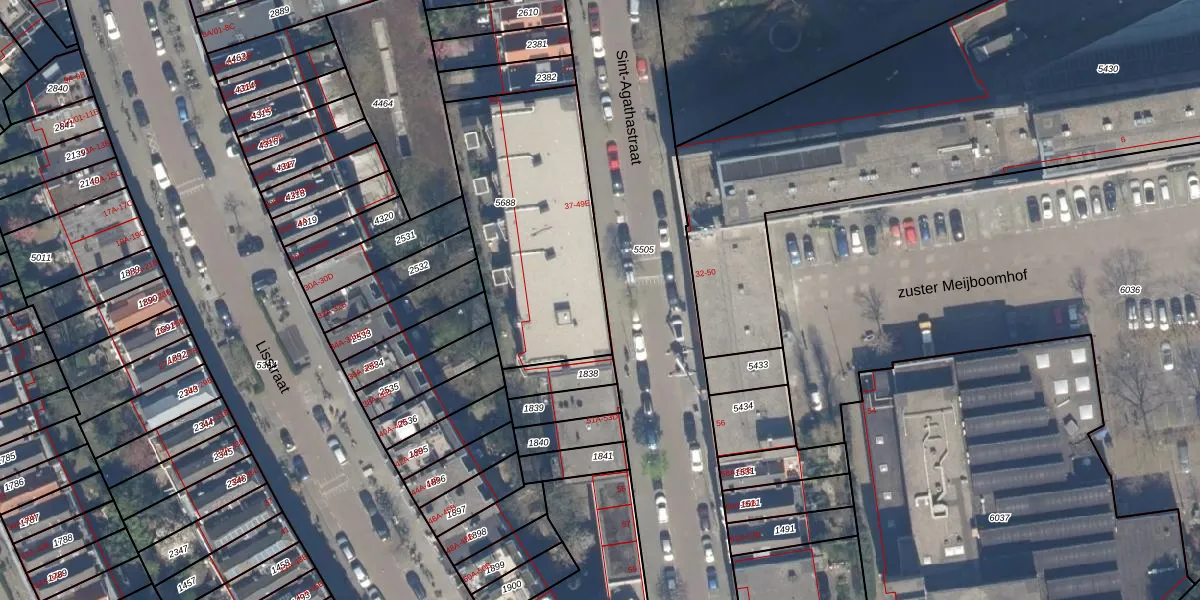 Het perceel waarop Sint-Agathastraat 43 staat heeft een oppervlakte van 928 m². Dit is een groot perceel. De perceeloppervlakte wordt geregistreerd door het Kadaster. Gedetailleerde informatie over de maten van dit perceel kunt u vinden in het rapport Kadastrale kaart met maatvoering van Sint-Agathastraat 43.