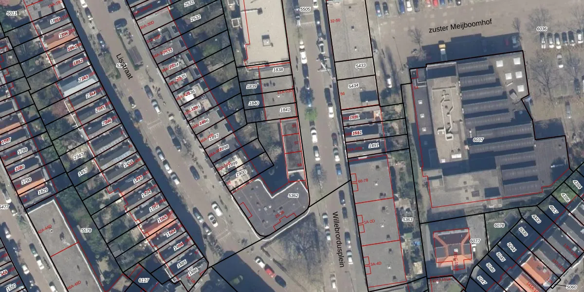 Het perceel waarop het adres ligt is RTD09-Y-5362. De afkorting 'RTD09' staat voor kadastrale gemeente Rotterdam. Het perceel is met 650 m² relatief groot. Het gemiddelde ligt in de kadastrale gemeente Rotterdam op 443,14 m². De grootste perceeloppervlakte in de kadastrale gemeente is 7,0 ha. De kleinste oppervlakte bedraagt 0 m². Op het perceel liggen in totaal 15 adressen. De laatste wijziging in het de Basisregistratie Kadaster (BRK) was op 10-07-2003.